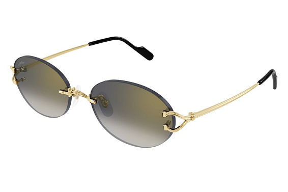 Овальные очки, из материала пластик и цвете золото помогут понять основные черты новой коллекции оправ модного бренда CARTIER.