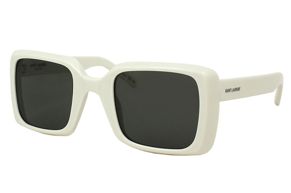 Квадратные очки, из материала пластик и цвете белый помогут понять основные черты новой коллекции оправ модного бренда SAINT LAURENT.
