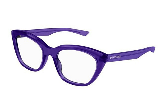 Овальные очки, из материала пластик и цвете синий помогут понять основные черты новой коллекции оправ модного бренда BALENCIAGA.