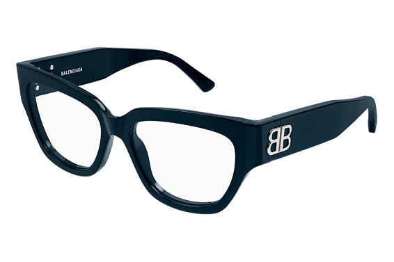 Прямоугольные очки, из материала пластик и цвете синий помогут понять основные черты новой коллекции оправ модного бренда BALENCIAGA.