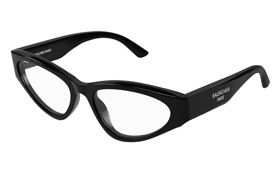 Необычной формы очки, из материала пластик и цвете черный помогут понять основные черты новой коллекции оправ модного бренда BALENCIAGA.