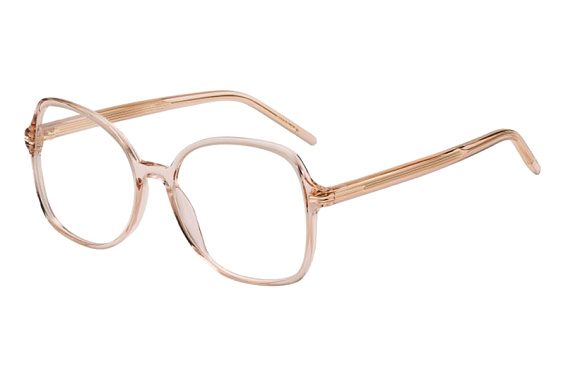 Овальные очки, из материала пластик и цвете бежевый помогут понять основные черты новой коллекции оправ модного бренда BOSS.