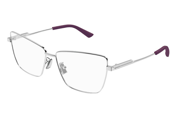 Прямоугольные очки, из материала традиционные металлы и цвете серебро помогут понять основные черты новой коллекции оправ модного бренда BOTTEGA VENETA.