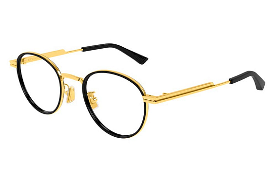 Круглые очки, из материала комбинированные и цвете черный помогут понять основные черты новой коллекции оправ модного бренда BOTTEGA VENETA.