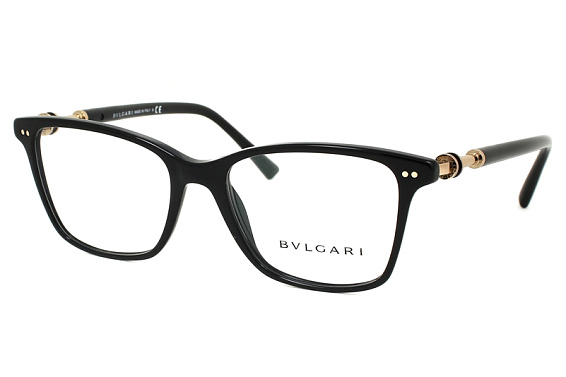 Прямоугольные очки, из материала пластик и цвете черный помогут понять основные черты новой коллекции оправ модного бренда BVLGARI.