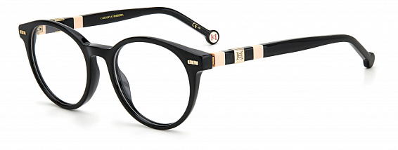 Круглые очки, из материала пластик и цвете черный помогут понять основные черты новой коллекции оправ модного бренда CAROLINA HERRERA.