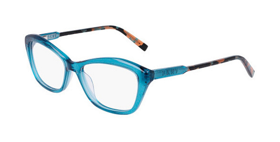 Прямоугольные очки, из материала пластик и цвете голубой помогут понять основные черты новой коллекции оправ модного бренда DKNY.