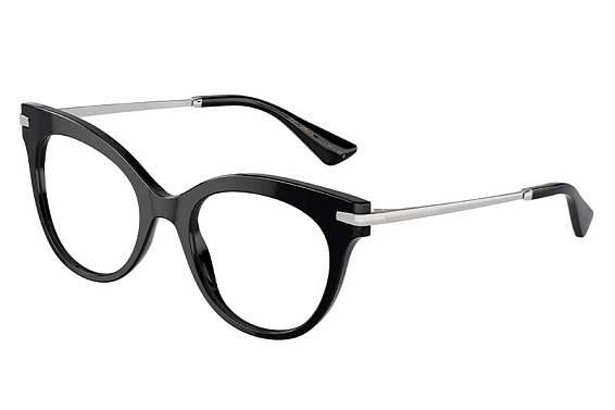 Овальные очки, из материала пластик и цвете черный помогут понять основные черты новой коллекции оправ модного бренда DOLCE & GABBANA.