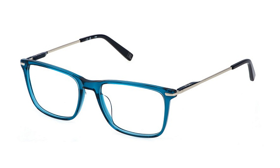 Прямоугольные очки, из материала пластик и цвете голубой помогут понять основные черты новой коллекции оправ модного бренда FILA.