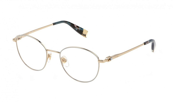 Круглые очки, из материала традиционные металлы и цвете золото помогут понять основные черты новой коллекции оправ модного бренда FURLA.
