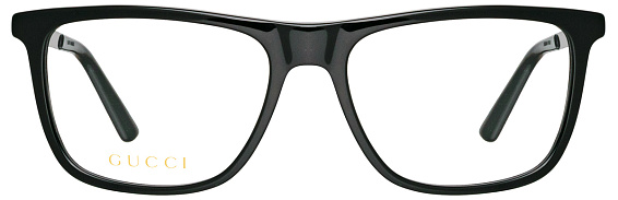 Прямоугольные очки, из материала пластик и цвете черный помогут понять основные черты новой коллекции оправ модного бренда GUCCI.