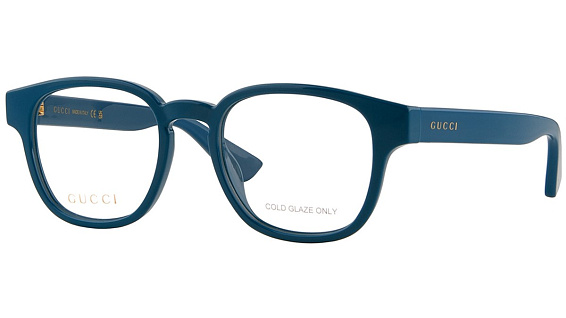 Прямоугольные очки, из материала пластик и цвете синий помогут понять основные черты новой коллекции оправ модного бренда GUCCI.