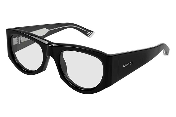 Овальные очки, из материала пластик и цвете черный помогут понять основные черты новой коллекции оправ модного бренда GUCCI.