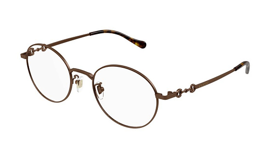 Овальные очки, из материала традиционные металлы и цвете коричневый помогут понять основные черты новой коллекции оправ модного бренда GUCCI.