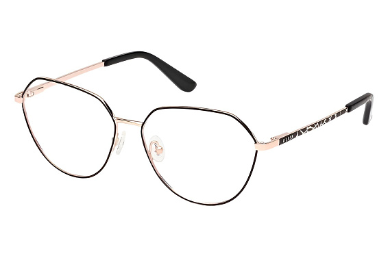 Овальные очки, из материала традиционные металлы и цвете черный помогут понять основные черты новой коллекции оправ модного бренда GUESS.