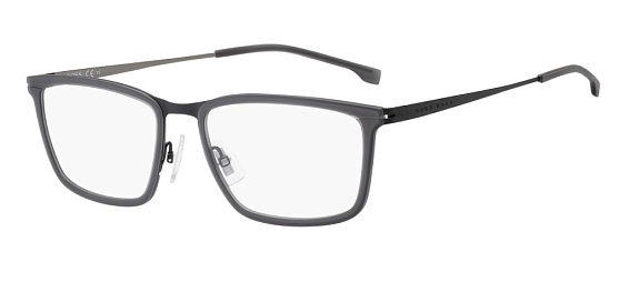 Прямоугольные очки, из материала пластик и цвете серый помогут понять основные черты новой коллекции оправ модного бренда HUGO BOSS.