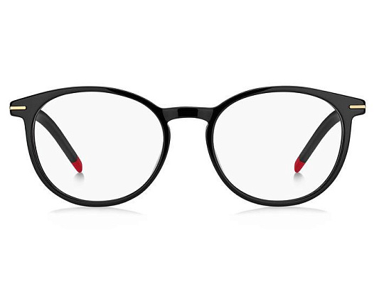 Овальные очки, из материала пластик и цвете черный помогут понять основные черты новой коллекции оправ модного бренда HUGO BOSS.