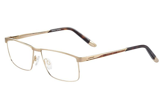 Прямоугольные очки, из материала традиционные металлы и цвете золото помогут понять основные черты новой коллекции оправ модного бренда JAGUAR.