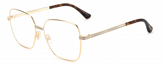 Квадратные очки, из материала традиционные металлы и цвете золото помогут понять основные черты новой коллекции оправ модного бренда JIMMY CHOO.