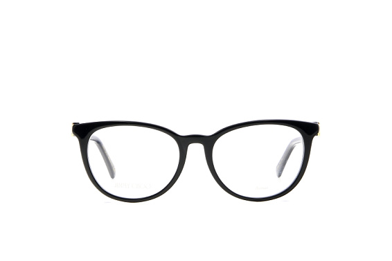 Овальные очки, из материала пластик и цвете черный помогут понять основные черты новой коллекции оправ модного бренда JIMMY CHOO.