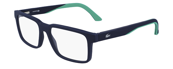 Прямоугольные очки, из материала пластик и цвете синий помогут понять основные черты новой коллекции оправ модного бренда LACOSTE.
