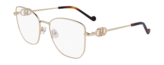 Квадратные очки, из материала традиционные металлы и цвете золото помогут понять основные черты новой коллекции оправ модного бренда LIU JO.