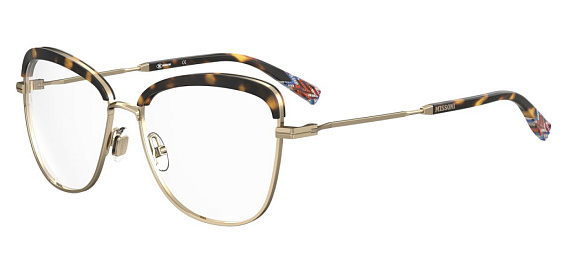 Овальные очки, из материала традиционные металлы и цвете золото помогут понять основные черты новой коллекции оправ модного бренда MISSONI.