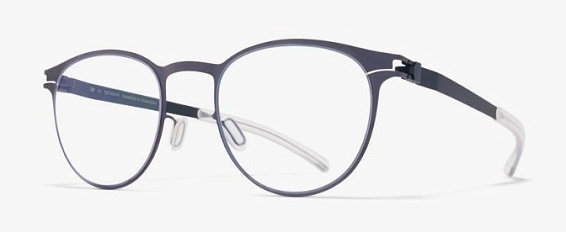 Круглые очки, из материала пластик и цвете синий помогут понять основные черты новой коллекции оправ модного бренда MYKITA.