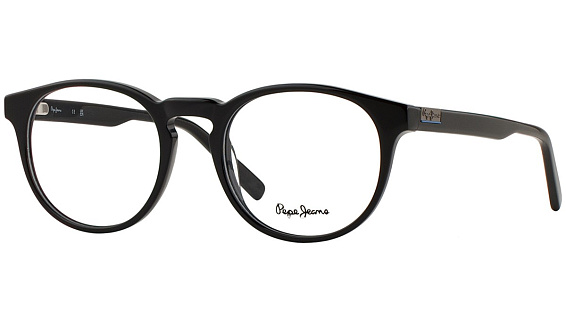 Овальные очки, из материала пластик и цвете черный помогут понять основные черты новой коллекции оправ модного бренда PEPE JEANS.