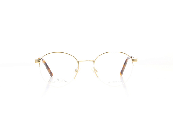 Овальные очки, из материала традиционные металлы и цвете золото помогут понять основные черты новой коллекции оправ модного бренда PIERRE CARDIN.