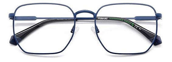 Прямоугольные очки, из материала традиционные металлы и цвете синий помогут понять основные черты новой коллекции оправ модного бренда POLAROID.