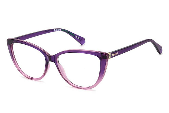 Овальные очки, из материала пластик и цвете фиолетовый помогут понять основные черты новой коллекции оправ модного бренда POLAROID.