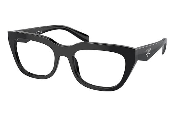 Прямоугольные очки, из материала пластик и цвете черный помогут понять основные черты новой коллекции оправ модного бренда PRADA.