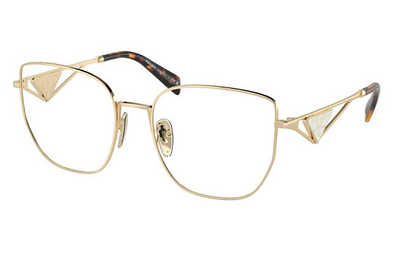 Квадратные очки, из материала традиционные металлы и цвете золото помогут понять основные черты новой коллекции оправ модного бренда PRADA.