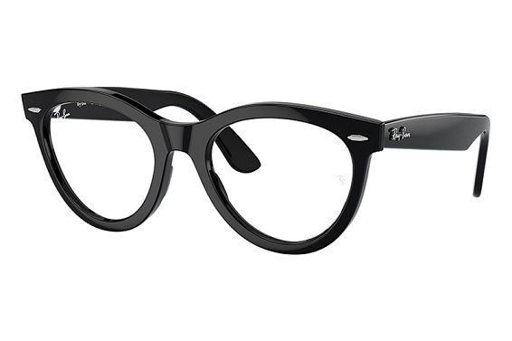 Овальные очки, из материала пластик и цвете черный помогут понять основные черты новой коллекции оправ модного бренда RAY-BAN.