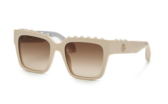 Квадратные очки, из материала пластик и цвете бежевый помогут понять основные черты новой коллекции оправ модного бренда ROBERTO CAVALLI.
