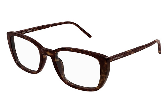 Прямоугольные очки, из материала пластик и цвете гавана помогут понять основные черты новой коллекции оправ модного бренда SAINT LAURENT.