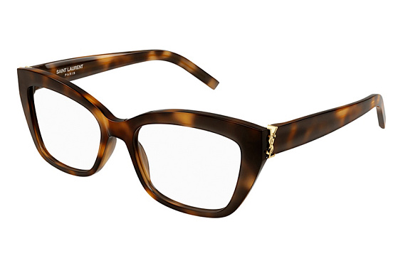 Прямоугольные очки, из материала пластик и цвете гавана помогут понять основные черты новой коллекции оправ модного бренда SAINT LAURENT.