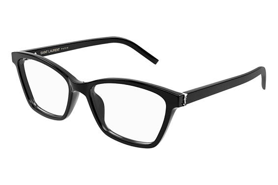 Прямоугольные очки, из материала пластик и цвете черный помогут понять основные черты новой коллекции оправ модного бренда SAINT LAURENT.