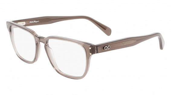 Прямоугольные очки, из материала пластик и цвете бежевый помогут понять основные черты новой коллекции оправ модного бренда SALVATORE FERRAGAMO.