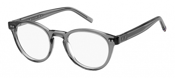 Овальные очки, из материала пластик и цвете серый помогут понять основные черты новой коллекции оправ модного бренда TOMMY HILFIGER.