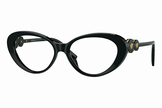 Овальные очки, из материала пластик и цвете черный помогут понять основные черты новой коллекции оправ модного бренда VERSACE.