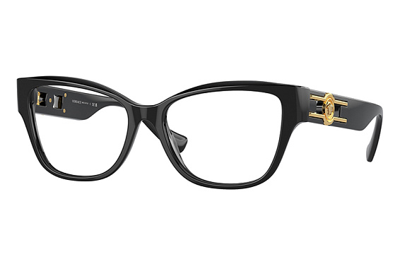 Прямоугольные очки, из материала пластик и цвете черный помогут понять основные черты новой коллекции оправ модного бренда VERSACE.