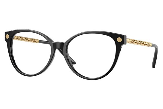 Овальные очки, из материала пластик и цвете черный помогут понять основные черты новой коллекции оправ модного бренда VERSACE.