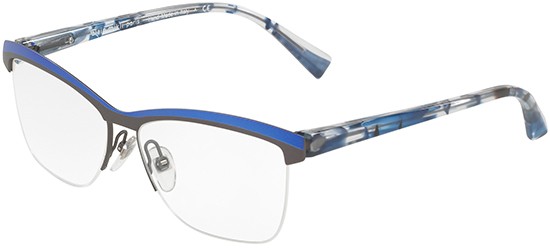 Прямоугольные очки, из материала пластик и цвете синий помогут понять основные черты новой коллекции оправ модного бренда ALAIN MIKLI.