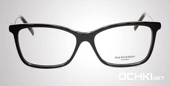 Прямоугольные очки, из материала пластик и цвете черный помогут понять основные черты новой коллекции оправ модного бренда ANA HICKMANN.