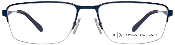 Прямоугольные очки, из материала традиционные металлы и цвете синий помогут понять основные черты новой коллекции оправ модного бренда ARMANI EXCHANGE.