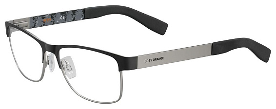 Прямоугольные очки, из материала традиционные металлы и цвете черный помогут понять основные черты новой коллекции оправ модного бренда BOSS ORANGE.