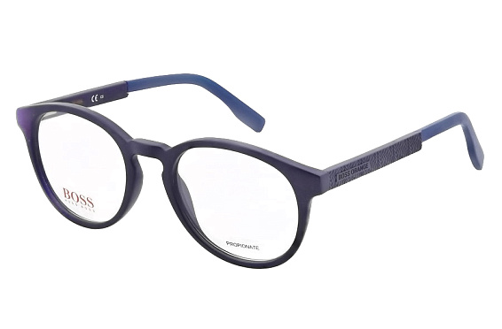 Овальные очки, из материала пластик и цвете синий помогут понять основные черты новой коллекции оправ модного бренда BOSS ORANGE.