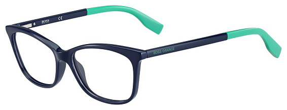 Прямоугольные очки, из материала пластик и цвете синий помогут понять основные черты новой коллекции оправ модного бренда BOSS ORANGE.